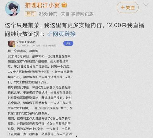 最近娱乐圈可是热闹非凡呢!蔡徐坤这个名字,相信大家都不陌生吧?这位流量小生,自从出道以来,就一直是吃瓜群众们的焦点。今天,就让我带你一起深入挖掘蔡徐坤的八卦娱乐世界,看看这位小哥哥的吃瓜日常吧!